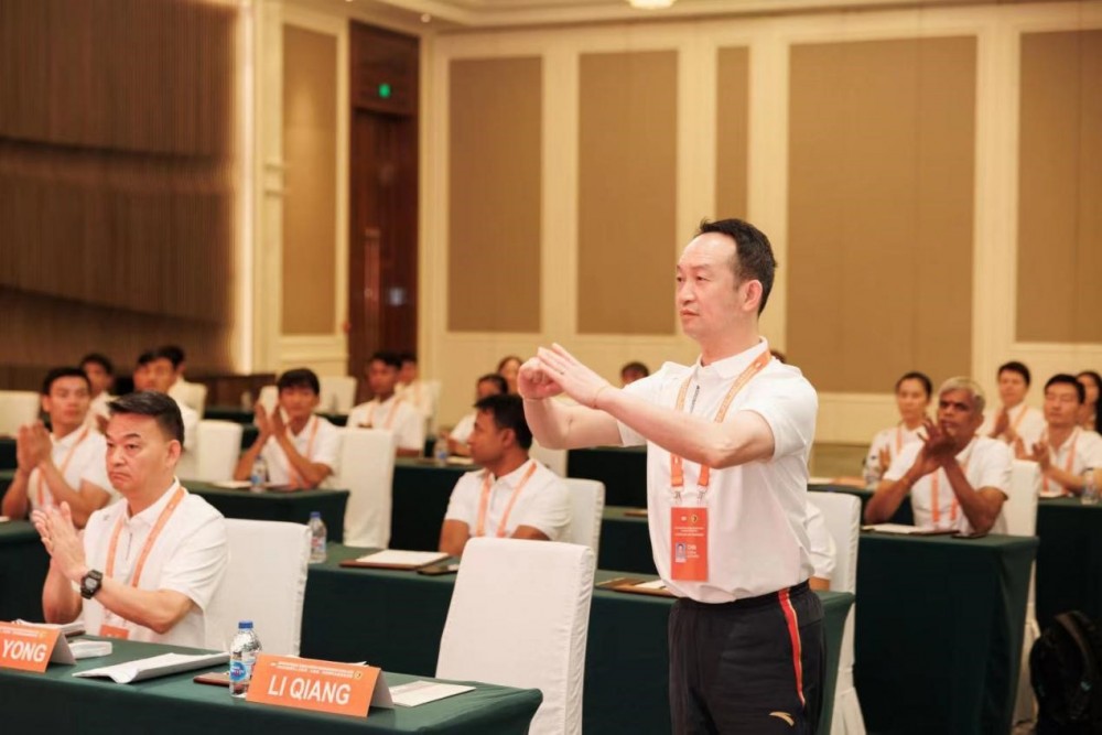 On behalf of the Wushu Administrative Center of the General Administration of Sport of China and the CWA, Mr. Li Yongqiang extended a warm welcome and heartfelt thanks to the instructors and trainees in this course. He said that the CWA, together with the WFA, is committed to the high-quality development of Wushu sport in Asia, promoting cultural exchanges and people-to-people exchanges among Asian countries, and continuously enhancing the status and influence of Wushu on the international sports stage. This training course is an important measure for us to promote Wushu. We have brought together outstanding coaches and athletes from all over Asia to build a platform for mutual learning and common progress, creating more opportunities for everyone to get in touch with the most cutting-edge Wushu concepts, the most exquisite Wushu skills, and enrich everyone's teaching experience. As the Chairman of the WFA Technical Committee, he emphasized that this training course will follow the attendance system, strict classroom disciplines, and pay attention to safety. He hoped that everyone will devote themselves to the training, not only to improve their own technical level, but also to deeply understand the philosophical thoughts and cultural connotations contained in Wushu.