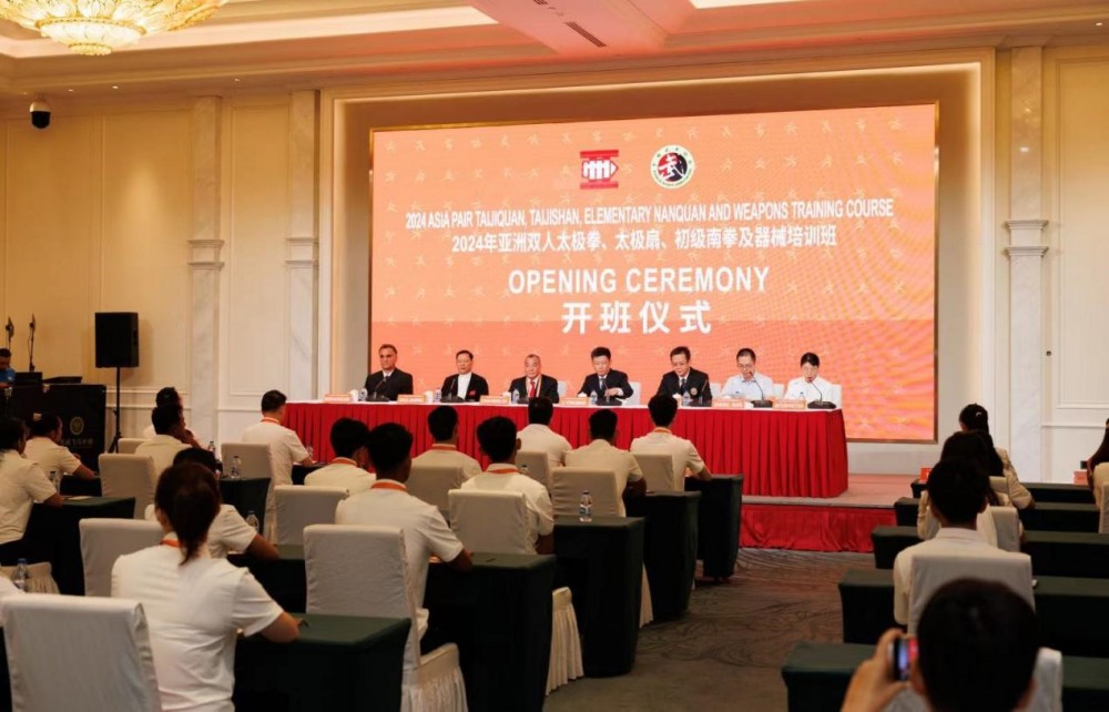 The opening ceremony of the “2024 Asia Pair Taijiquan, Taijishan, Elementary Nanquan and Weapons Training Course” was held on July 3 at Heilan Pegasus Water City, Jiangyin City, Jiangsu Province. The course was hosted by the Wushu Federation of Asia (WFA), organized and implemented by the Wushu Administrative Center of the General Administration of Sport of China and the Chinese Wushu Association (CWA), and supported and cooperated by the Jiangsu Wushu Association (JWA) and Heilan Group (HLA).