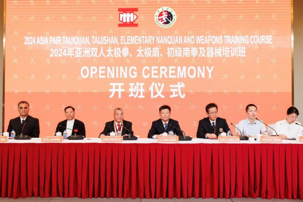 Mr. Zheng Nan finally introduced the course design and the biographies of the top expert instructors invited. He encouraged the trainees to pay full attention in class for the most leading knowledge in the Wushu field and the standardized technical skill guidance. It is hoped that all the trainees could cherish this learning opportunity with the experts, study hard, help each other, improve skill levels, enhance friendships, and make greater contributions to jointly promote the prosperity and development of Wushu in Asia.