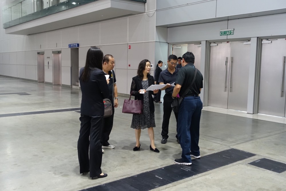 On the morning of March 2nd, the team arrived for site inspection at the venue, warm-up area, and multi-functional rooms, accompanied by the Mr. Allen Wong Siew Poh, President of the Malaysia Wushu Federation, Dato H’Ng Ban Choon, acting President and Vice-Presidents. Ms. Zhang Yuping made recommendation in regards to the competition venue arrangement, understanding to the equipment preparation and athlete’s hotel and other arrangements.