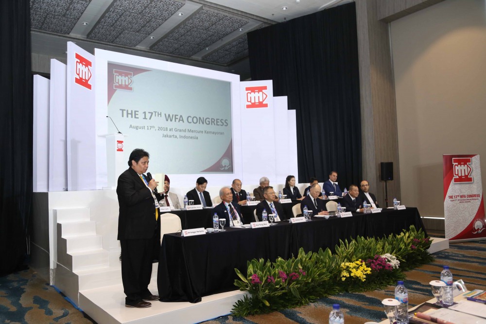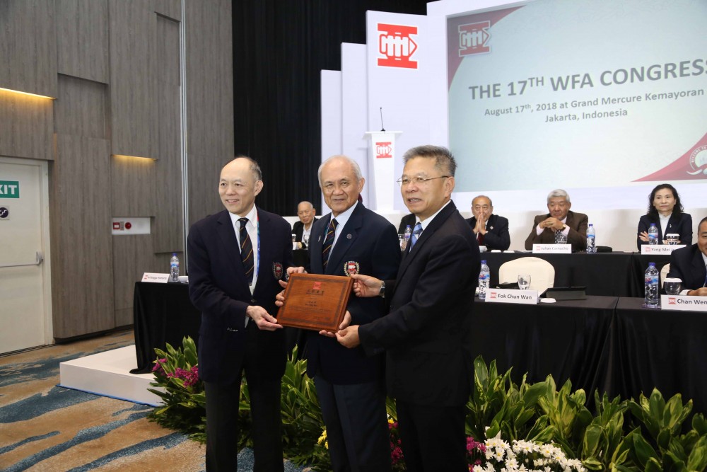 2018 is the election year for WFA, President Fok Chun Wan state in his address that WFA experienced four years of challenging, not only of the new appointment of both President and Secretary General, but also the mobility of the Secretariat from Tokyo to Macau; conducted the amendment of constitution in 2016, with the increase of Medical and Marketing & Promotion Committee, also the increase of competitions, such as the 1st Asian Cup Wushu Sanda Competition in 2017 and the host of the 1st Asian Traditional Wushu Championships this year; the establishment of the Asia Wushu Development foundation to support the development of wushu in each country. He believes that the new tem will continuously to promote WFA and the development of wushu in Asia.