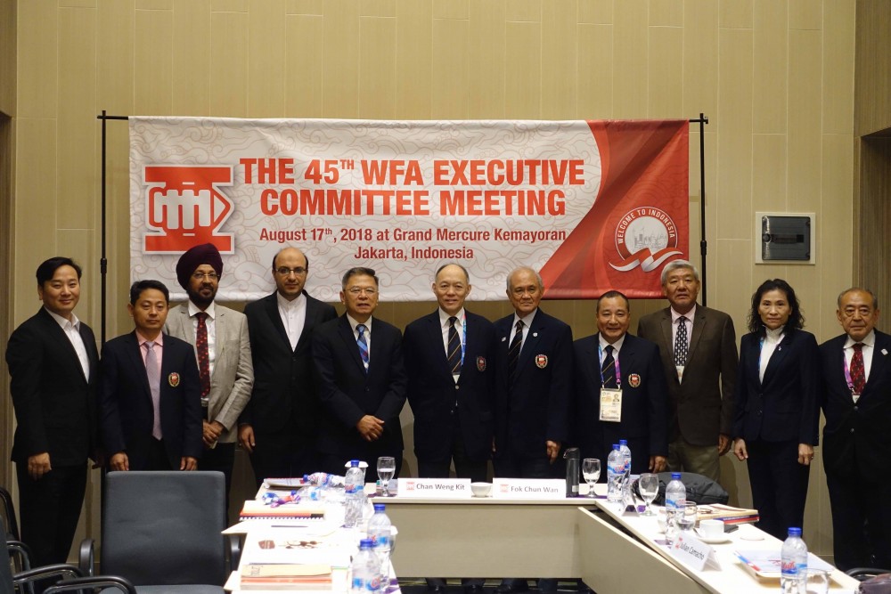 On August 17, 2018, prior to the 2018 Asian Games held in Indonesia, Wushu Federation of Asia hosted the 45th Executive Committee and the 17th Congress at the Grand Mercure Kemayoran in Jakarta.