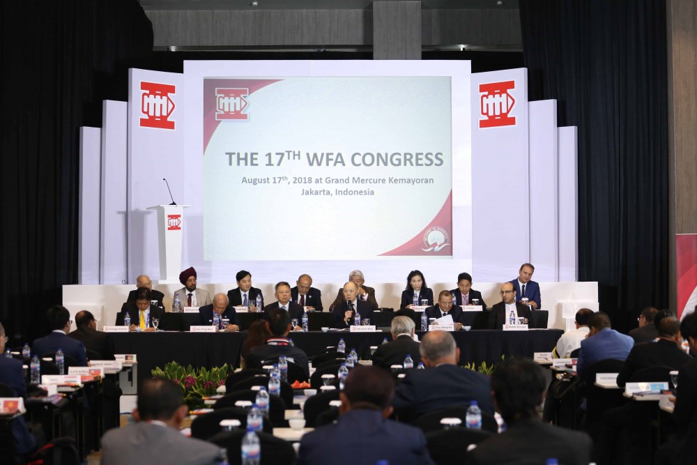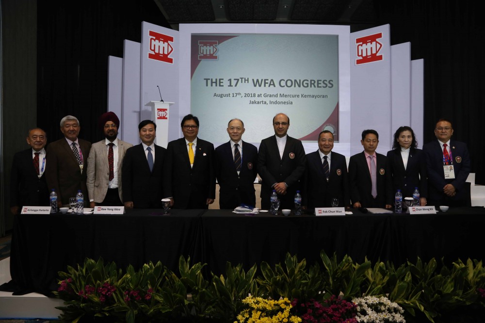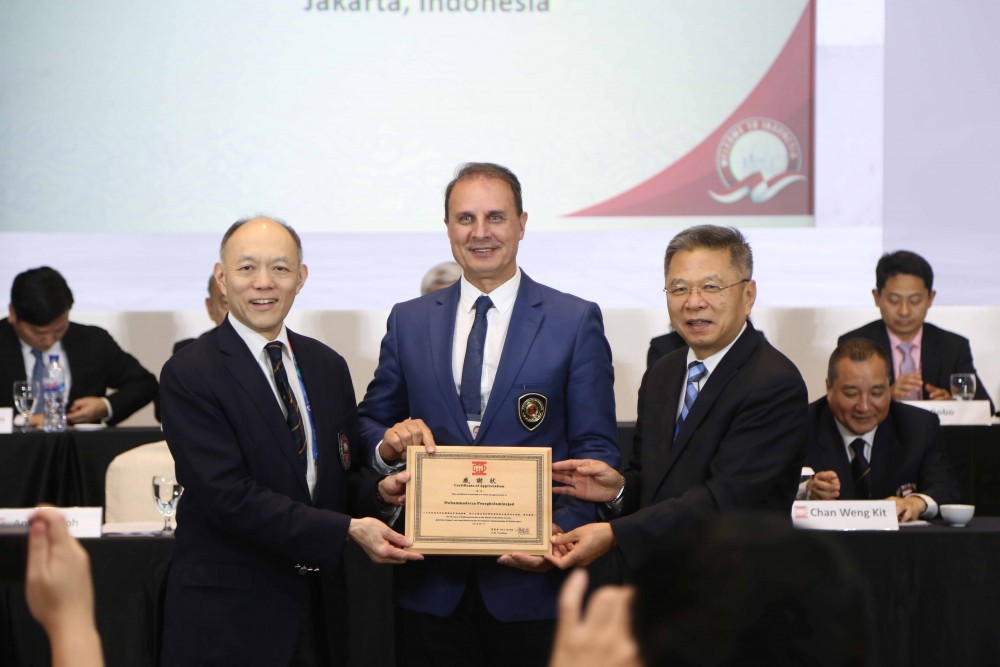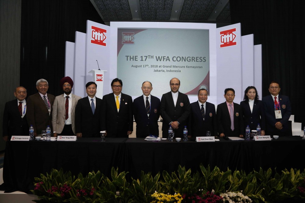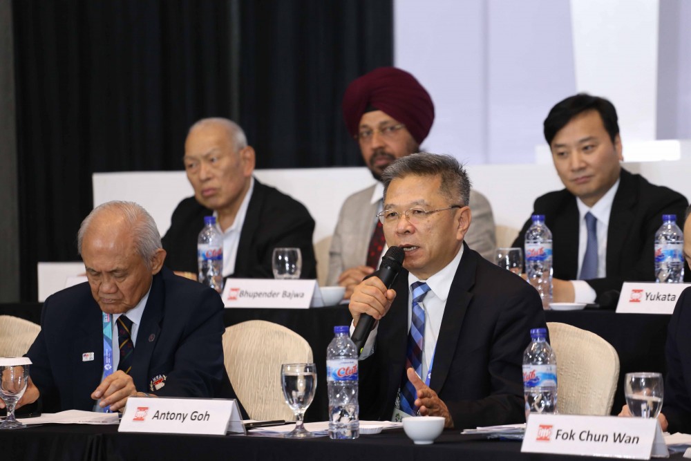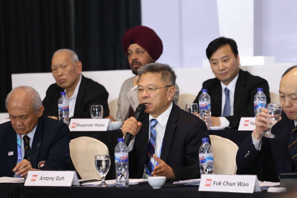 After, resolution has been made on the candidate list for the new session of the Executive Committee for the term 2018 to 2022. Fok Chun Wan remains to serve as the President; Mahdi Alinejad (Iran), Zhang Qiuping (China), Julian Camacho (Philippines) and Park Chang Bum (Korea) as Vice-Presidents. Chan Weng Kit as the Secretary General; and Executive Committee Members Li Bobo (Myanmar), Yang Mei Jung (Chinese Taipei), Bhupender Bajwa (India), Okasaki Yutaka (Japan), Chong Kim Fatt (Malaysia) and Airlangga Hartarto (Indonesia).