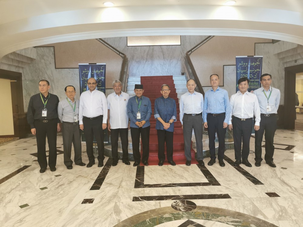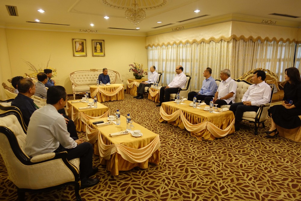 On the afternoon of August 18, President of the WFA Mr. Fok Chun Wan, Vice Presidents Mr. Mahdi Alinejad, Mr. Zhang Qiuping, Mr. Julian Camacho and Mr. Park Chang Bum was accompanied by Mr. Lim Boom Hwa, President of the Wushu Federation of Brunei Darussalam and Dr. Md. Fidaus Abdul Rahman, Chairman of the 10th Asian Junior Wushu Championship Organizing Committee to visit HRH Prince Haji Sufri Bolkiah, President of the National Olympic Council of Brunei Darussalam.