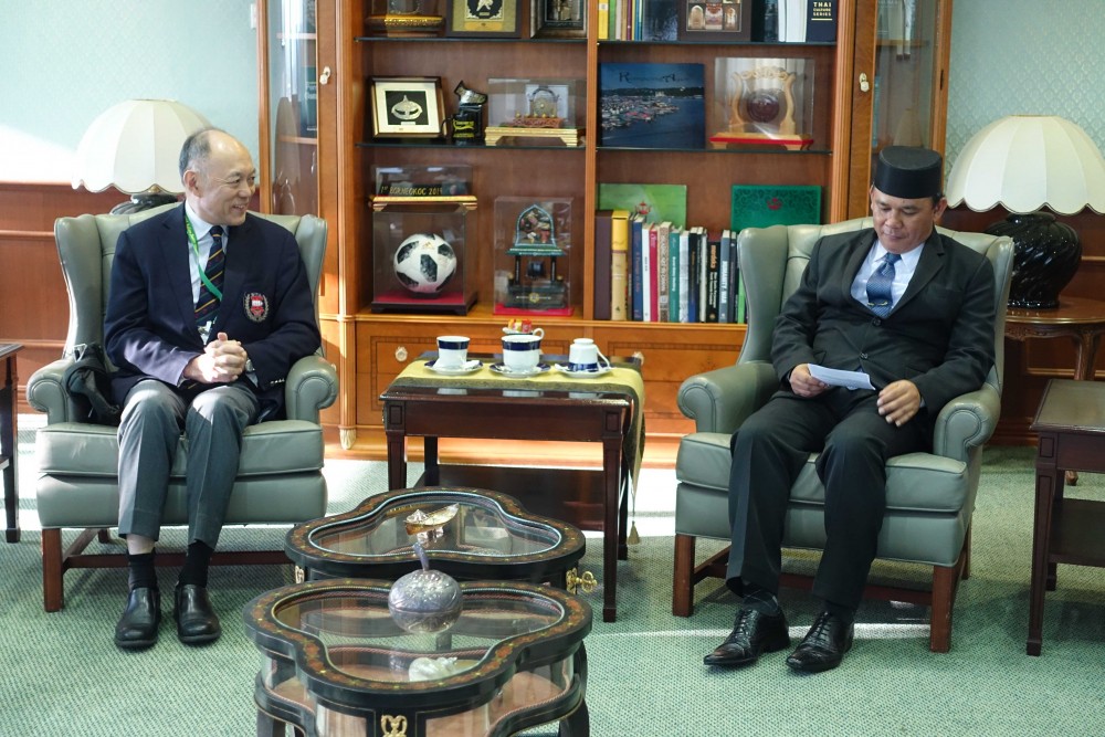 Evening of August 19, Mr. Fok Chun Wan visited the office of Major General (Rtd) Dato Paduka Seri Awang Haji Aminuddin Ihsan bin Pehin Orang Kaya Saiful Mulok Dato Seri Paduka Haji Abidin, Minister of Culture, Youth and Sports together with the member of the WFAExecutive Committee.